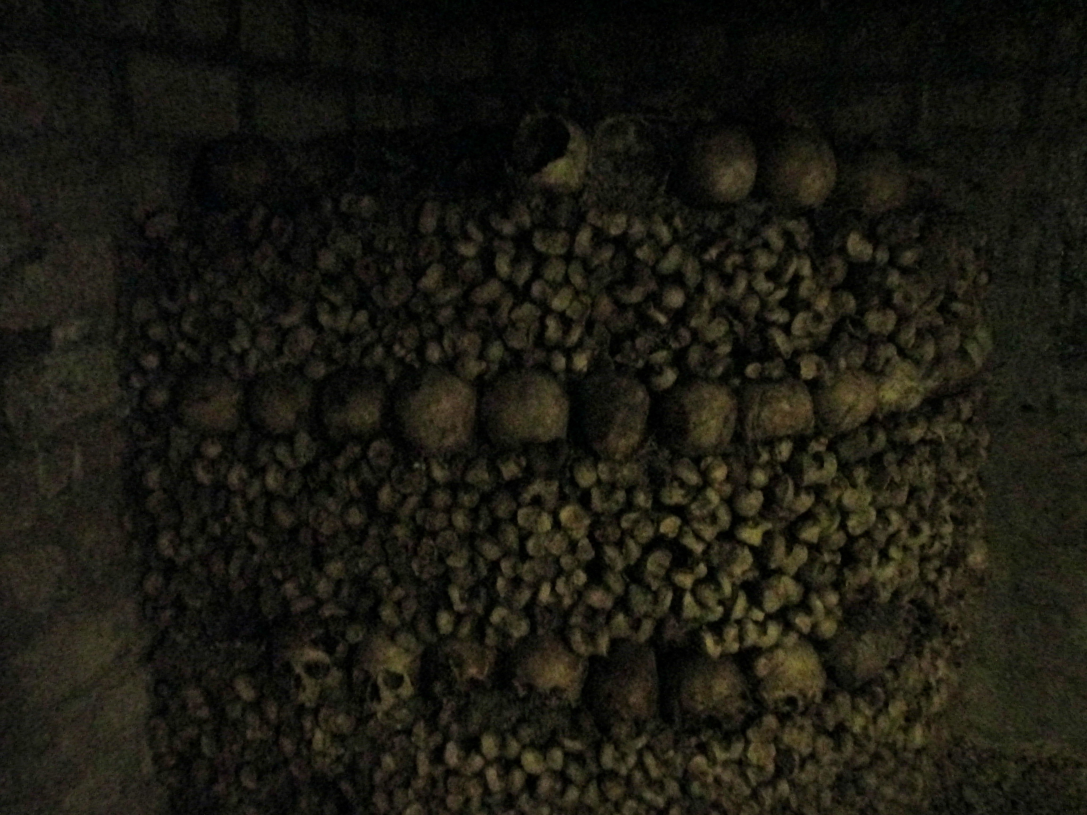 The photo from the entrance to the catacombs is from http://en.wikipedia.org/wiki/Catacombs_of_Paris. The remainder are my own.