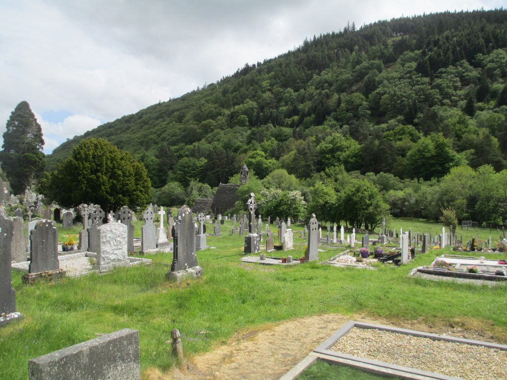 The spot has a spectacular view over the nearby lough, which is one of the loughs of Glendalough’s name