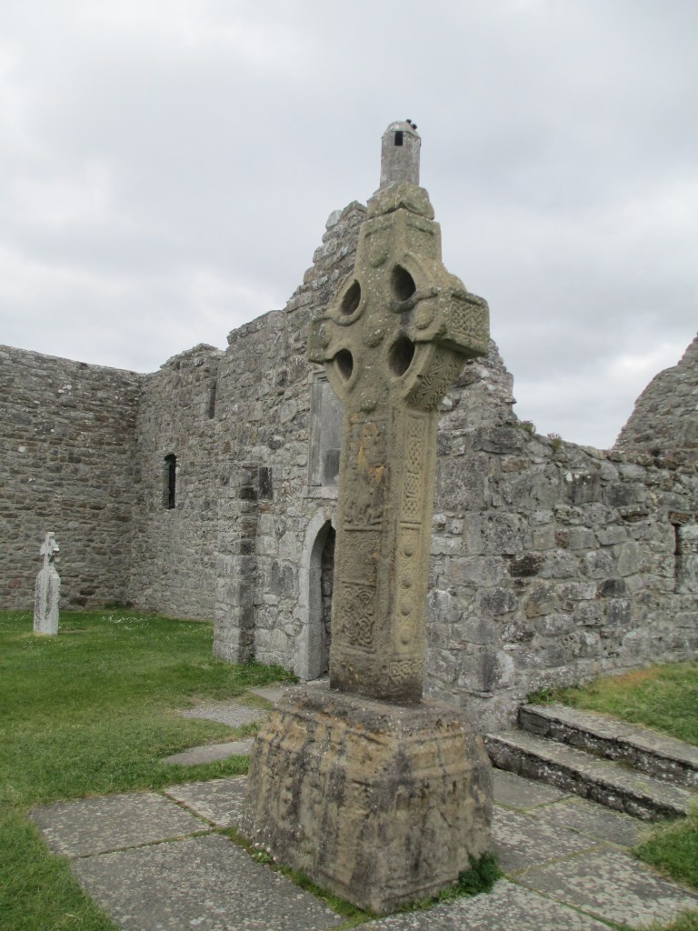 The site you see today is a combination of a number of eras and was occupied as a monastic settlement from roughly 600 CE to 1500 CE. Glendalough, might have begun with one man but it became a monastic school, a place of scholarly learning. Monastic schools, like Glendalough, trained young men as scholars, often fostering the children of the Irish kings. They also produced manuscripts, sometimes copying them, sometimes creating a completely new manuscripts and shared them with other scholastic institutions. In the case of Glendalough, there were close ties with Clonmacnoise in County Offaly, you can see it in the photos below.