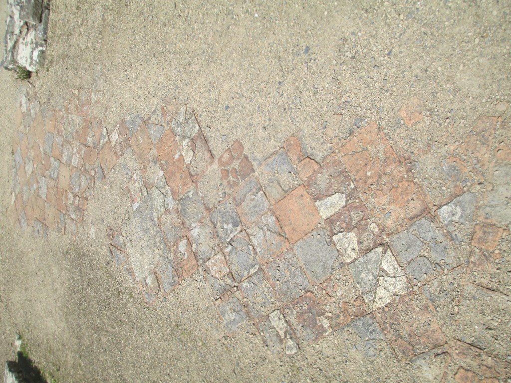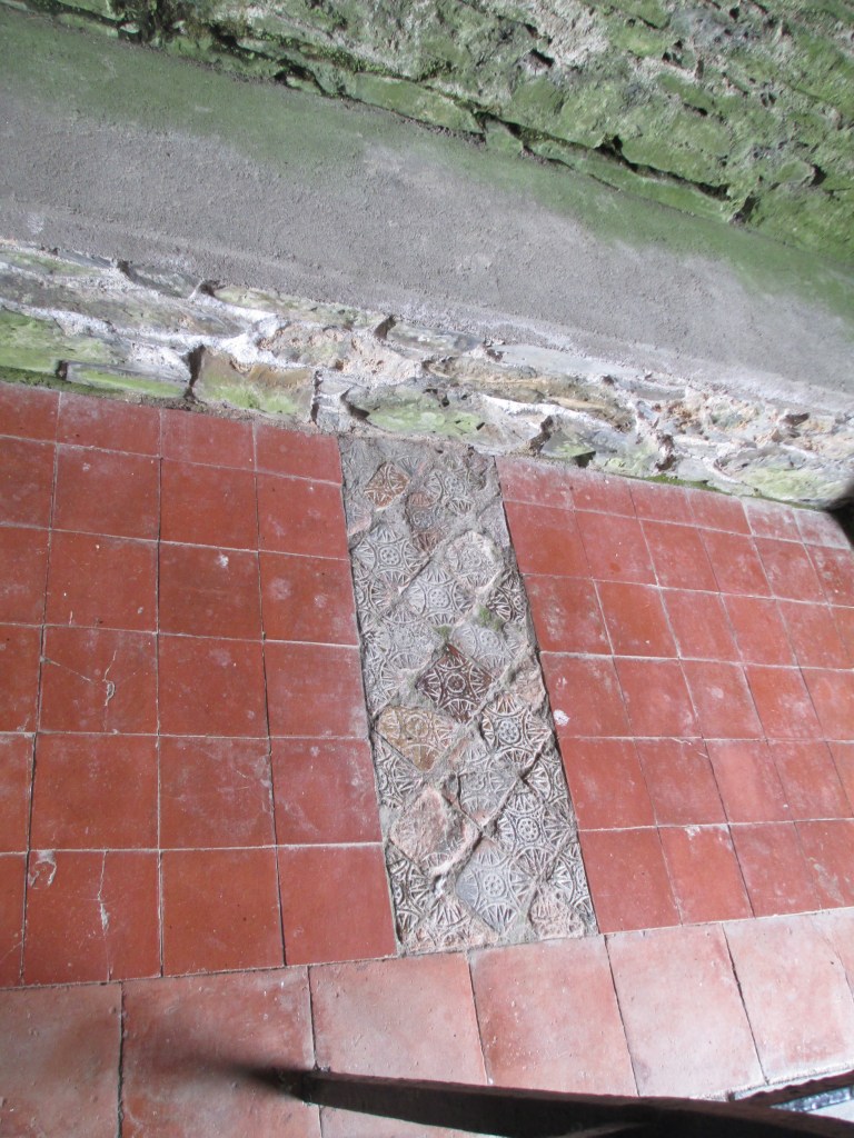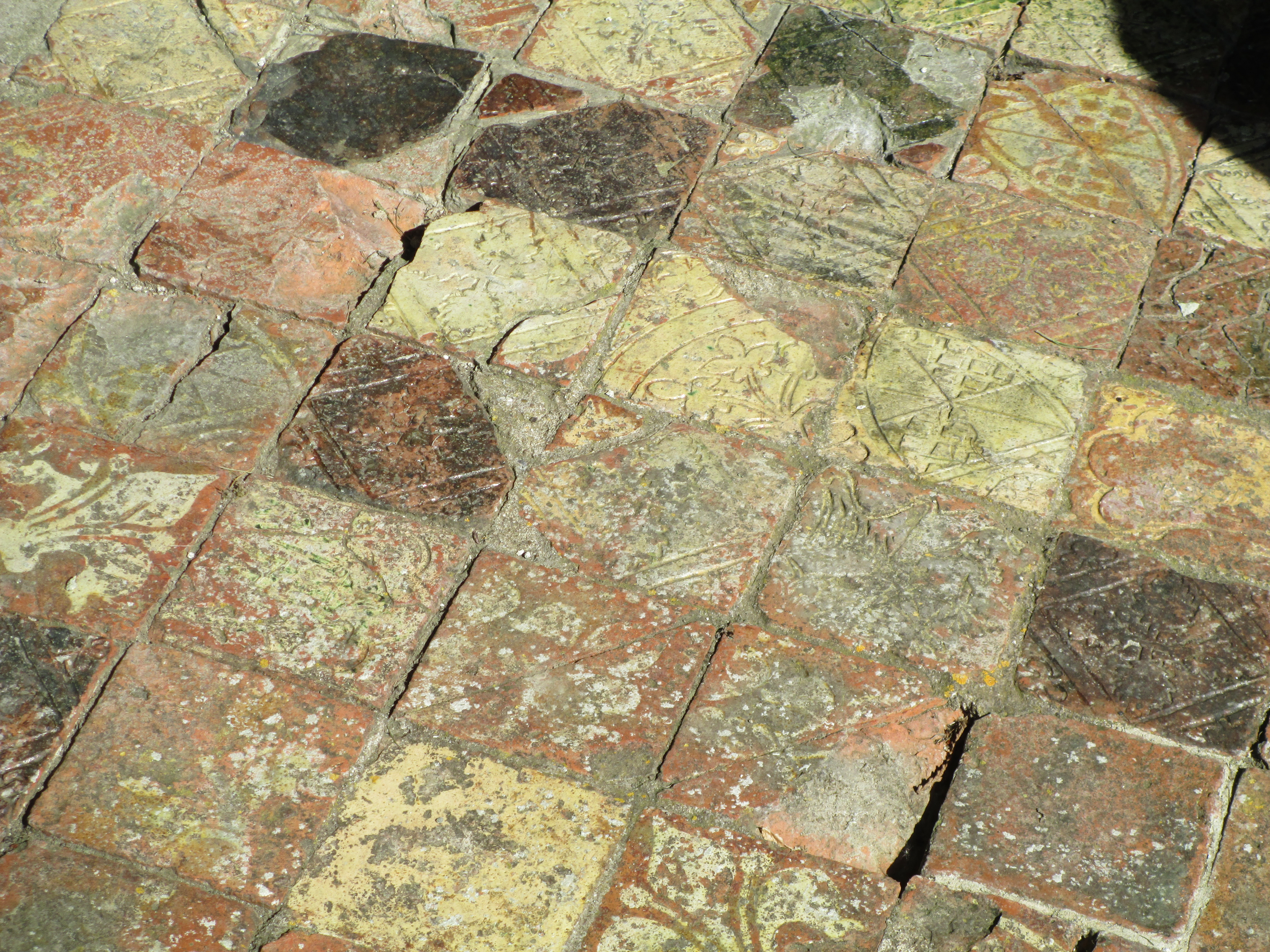 Like St Dogmael’s these tiles exhibit the wear that medieval tiles are subjected to, but you can make out the remains of some inscribed designs.