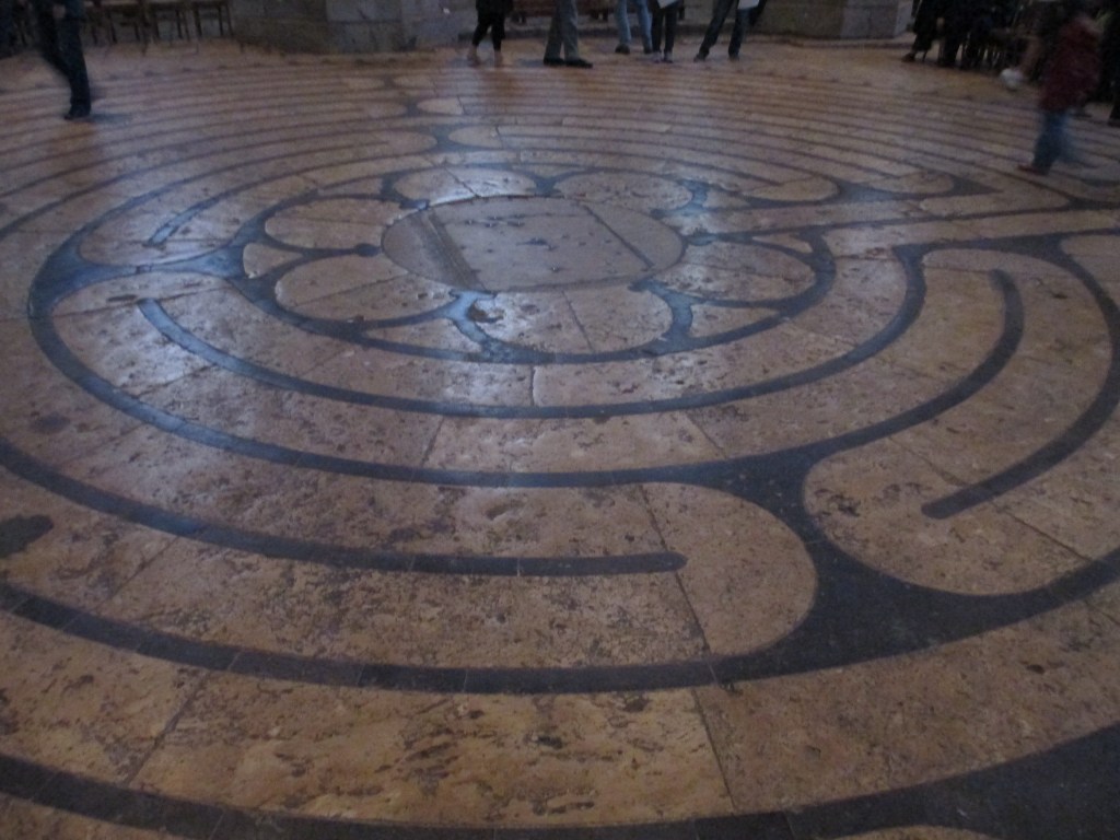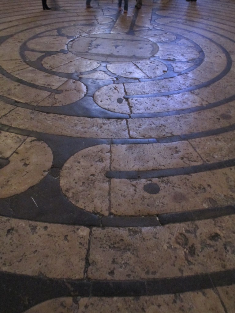 Secondly, I wanted to look quickly at Chartes and its labyrinth. A subject I will return to in much more detail at a later point. Chartres Cathedral has a labyrinth inlaid into its floor. It most likely dates to the beginning of the 13th century, like a lot of our floor tiles, its exact purpose has never been clear, but pilgrims continue to come to walk its meditative meanderings.