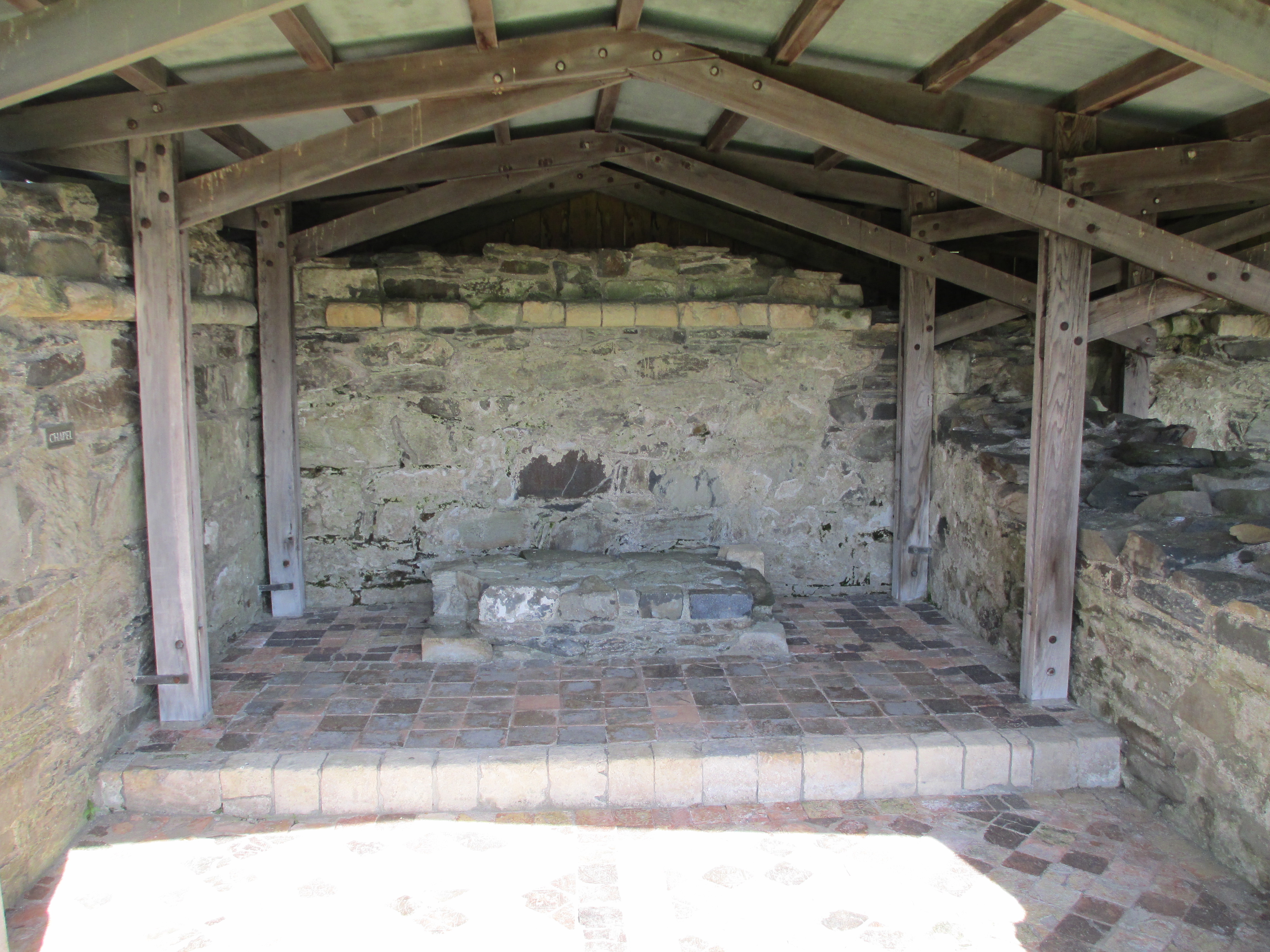 This tile is from Mellifont Abbey in Ireland, probably dates to the early 13th century and was excavated in the 1950s. It’s my favourite for two reasons, firstly the lion rampant design is still so clearly evident and secondly because I was allowed to hold it. It is surprisingly heavy, and made from earthenware with a lead glaze. It’s not the only medieval tile at Mellifont, you can see more in the photos below. As they were excavated in the 1950s they aren’t in their original positions, and while they have been laid out close to their original patterns, they are in a protected area because there was an issue with vandalism.