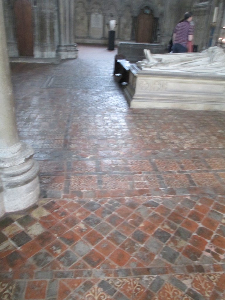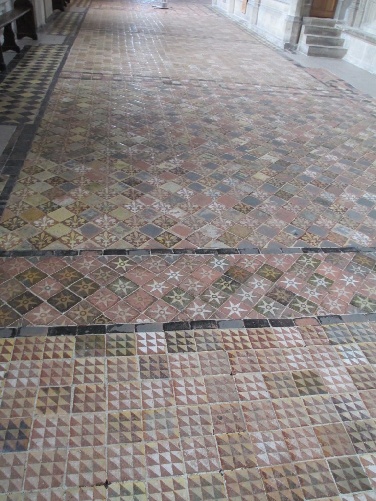 Now, I promised pictures, so I wanted to move on to some examples of medieval tiles outside of Mellifont and Strata Florida. Hopefully they’ll give you an idea of some of the different uses of medieval tiles, and their geographic range. The selection is limited to tiles I have photographs of, but they should give you a good overview.