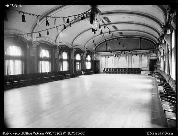 By the early 1900s the lecture hall had become a ballroom, you can see an image of it all decked out in bunting from roughly the 1930s from Victorian Railways Corporation records, held at PROV, below.