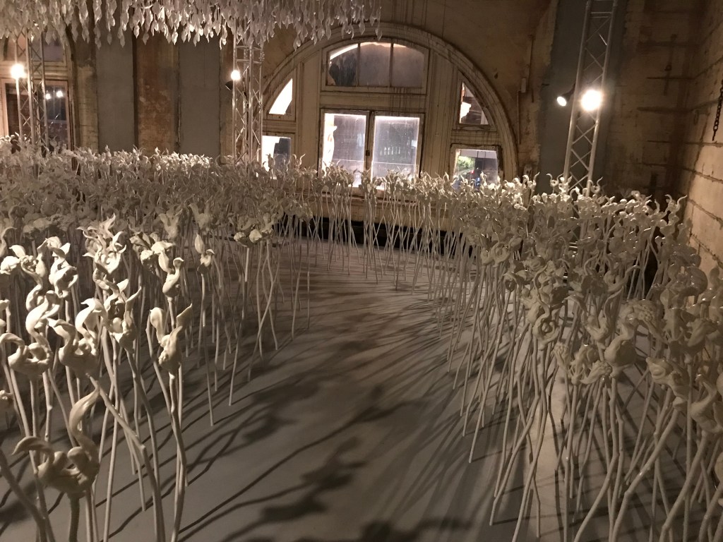 The following room was my favourite, ballroom aside. Celestial Field is mesmerising, the human and natural border are collapsing as flowers, like organs, grow and hang from the ceiling and in the middle is The Balance- the naturalisation of mechanisation, as two mechanical forms reach for each other.