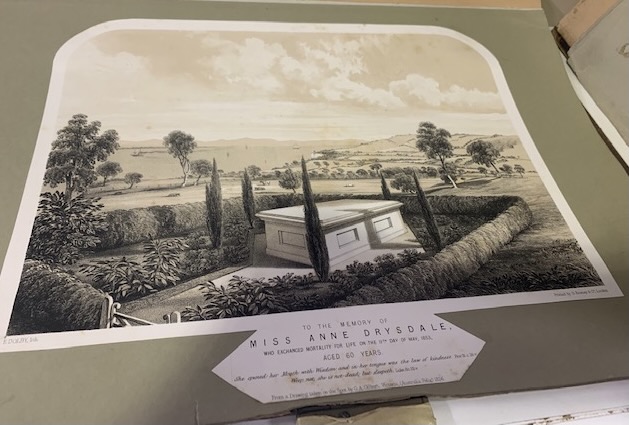 The image of Anne’s tomb comes from a photo of a copy of a lithograph that can be found in the State Library of NSW https://collection.sl.nsw.gov.au/record/n88D2dPn
