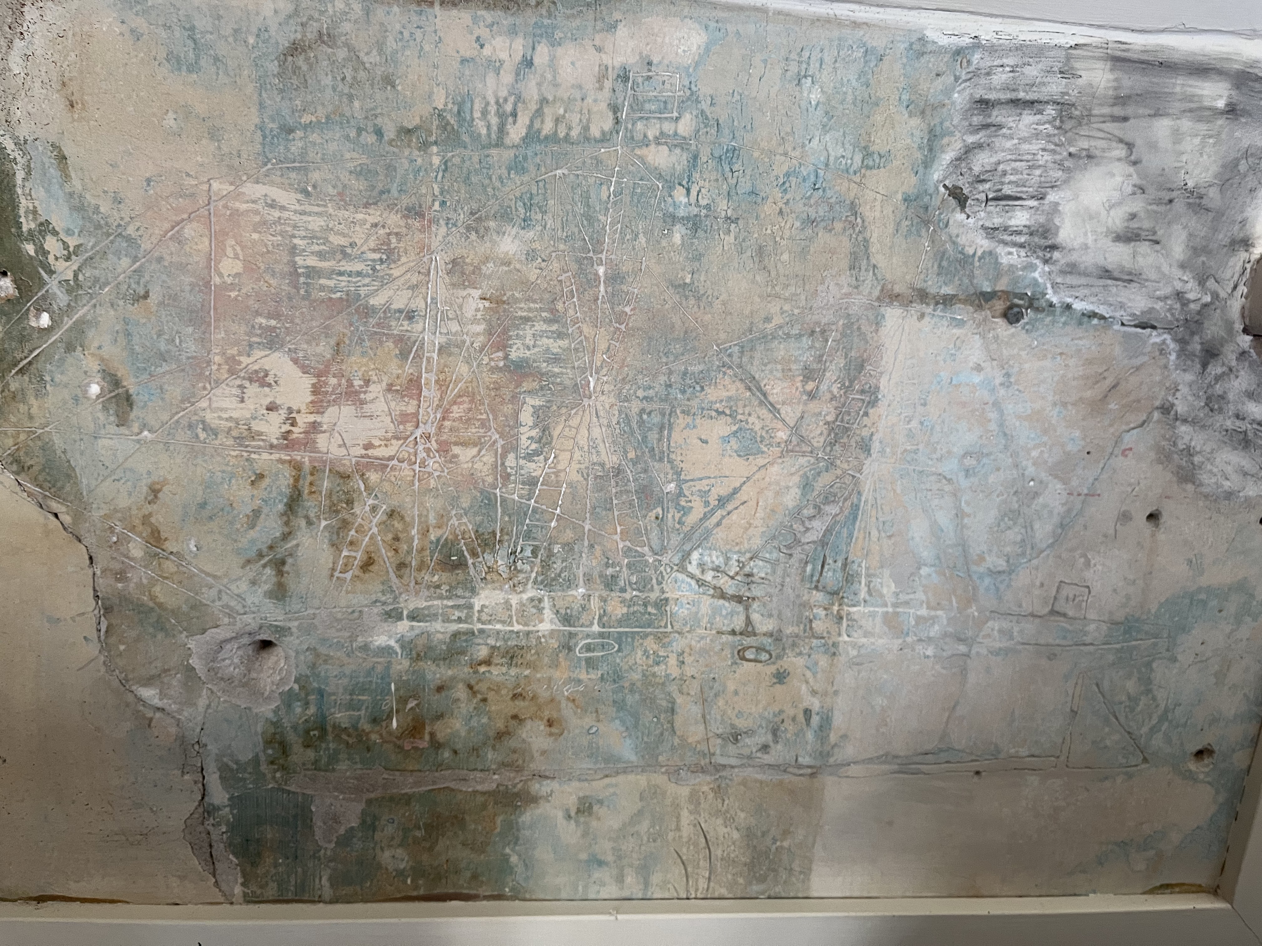 As well as most of the interior walls and doors. Coriyule is very much a house that has been lived in. From remnant wall paper, to a mysterious ship called the Nelson etched into the plaster wall.