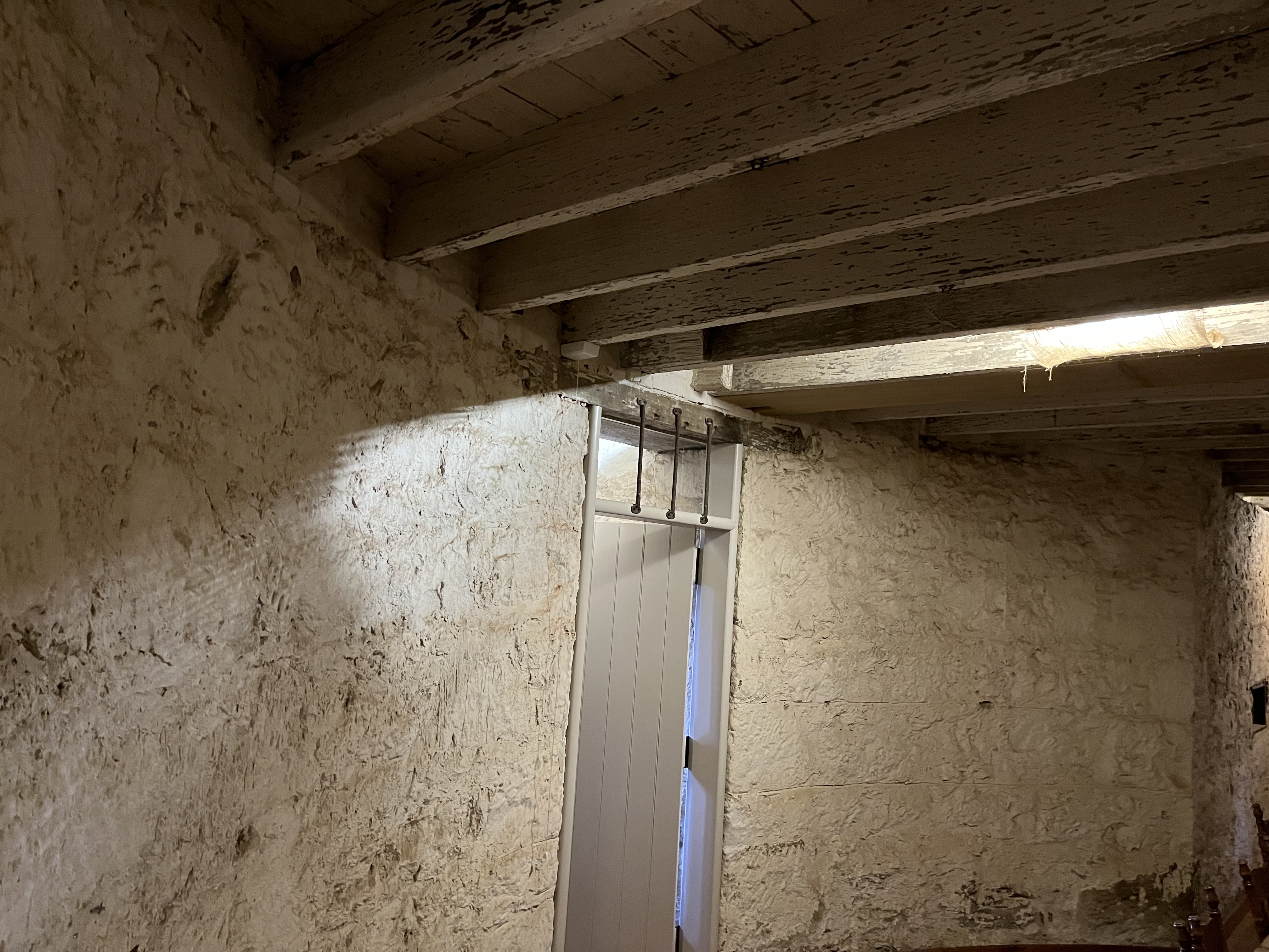 You can see some of the hooks in the ceiling that show it was used for hanging and preserving food.