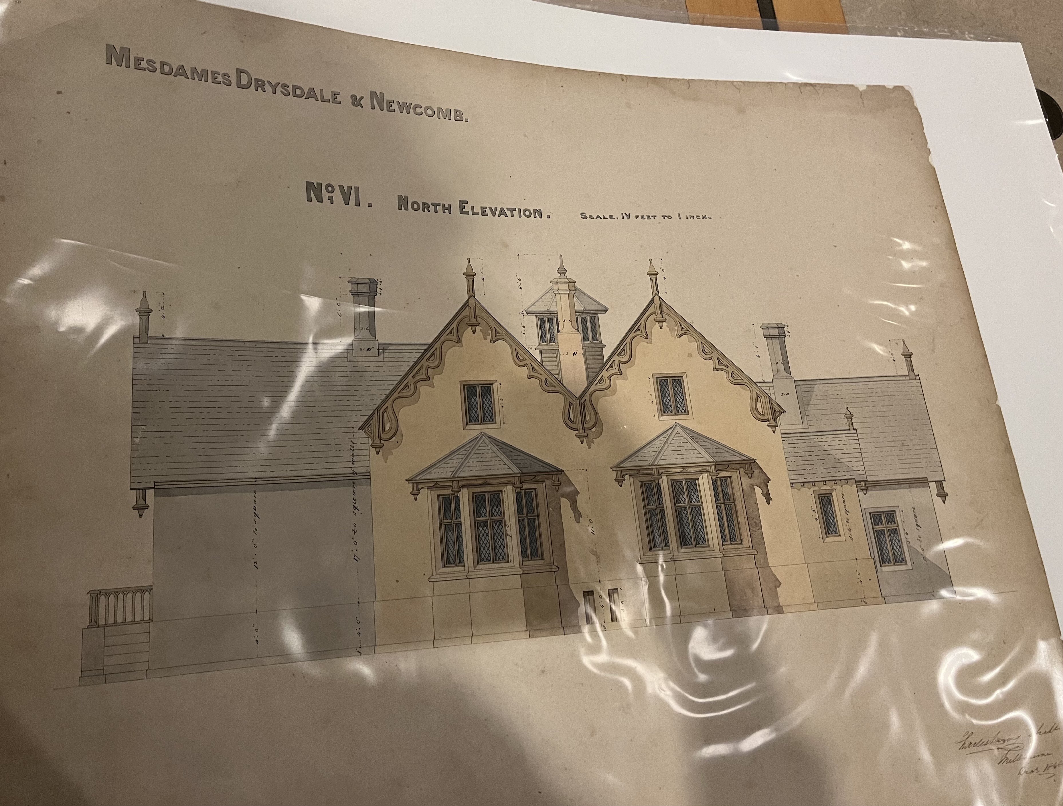 So this stone cottage brings us back to Coriyule. Though, as you’ll have seen from the photo above, Coriyule is no cottage. Anne and Caroline were determined to own land and they took a deliberate camping holiday at Coriyule in 1846 to test it out. They returned “determined if possible to buy Coriyule.” And buy they did, they had obtained the lease for some of the land in 1843 but secured the free hold in 1847. This is where we hit a very frustrating gap in the diaries. There is one missing volume and unfortunately it is the late 1847-mid 1851 which was the years that they had Coriyule built and moved in. So we don’t have the detail we do about the rest of their lives. What we do know is that they commissioned the house to be designed by Charles Laing in 1849, and the plans are signed by both Caroline and Anne and in both their names. You can see them below.