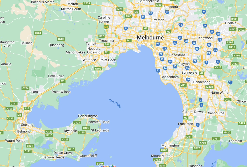 Caroline was born in London in 1812. Her family were merchants. She had a slightly itinerant early life as she was brought up in Spain with her father, but when he died she returned to England to be raised by her paternal grandmother. There isn’t much known about her early years, but she sailed for Van Diemen’s Land in 1833 also ostensibly for her health. She wasn’t part of the cadre of women brought over to be wives for settlers. In fact there is no indication she was seeking a husband. In Van Diemen’s Land (now Tasmania) she met Dr Alexander Thomson and his wife and became governess to their daughter. She sailed with them in 1836 as part of the Port Phillip Association’s journey to what would become Melbourne in what would become Victoria. She was one of only 35 women in a settlement of 117. She probably started the first school in Melbourne. In 1837 she moved to Geelong with the Thomsons where she could meet Anne, who came to stay with the Thomsons in 1840. You can see Geelong in relation to Melbourne below