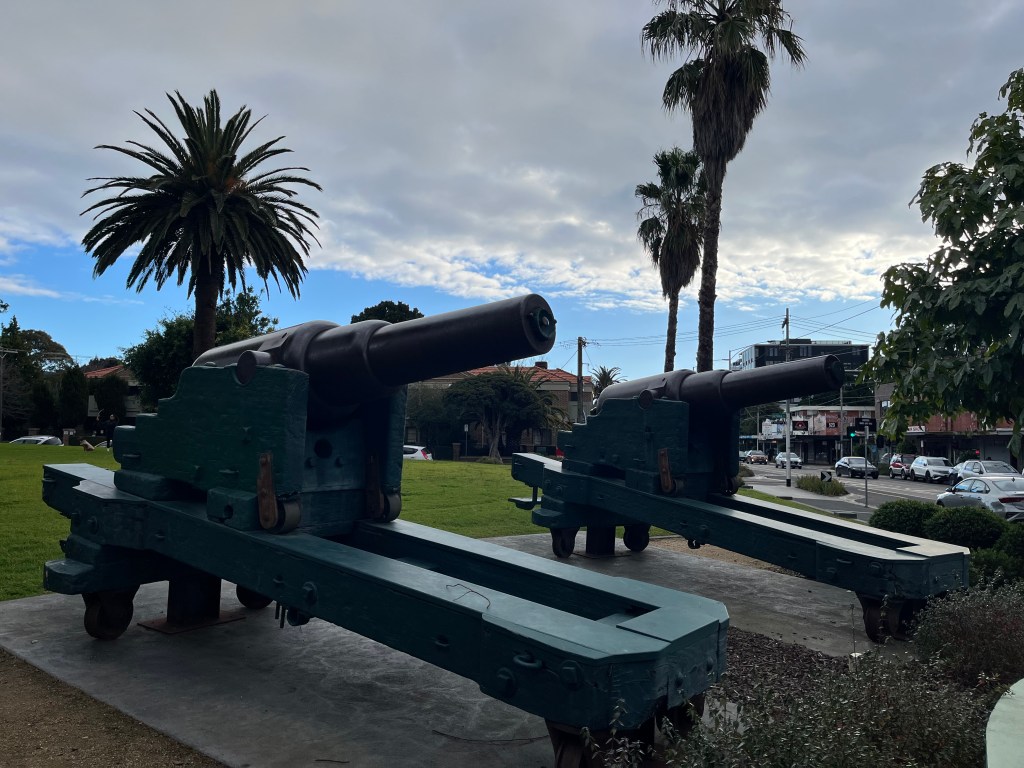 While the memory of the night Melbourne thought it was being invaded by Russia has largely faded, there is a surprisingly tangible legacy of the fear that led to it all over Victoria. Have you ever seen cannons in a public park or foreshore in Victoria? Maybe climbed on them as a child? Ever wondered why they’re there? There’s a pretty good chance they were installed out of fear of Russian invasion in the 19th century. An excellent example are the cannons currently at Hopetoun Gardens in Elsternwick. You can see them below.